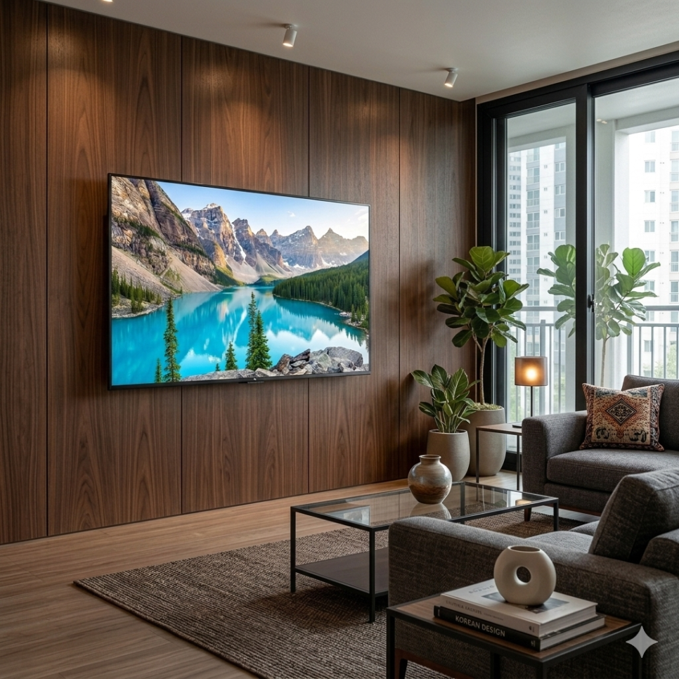 넓은 거실에는 55인치 이상의 TV를 선택하는 것이 가장 적절한 크기입니다.