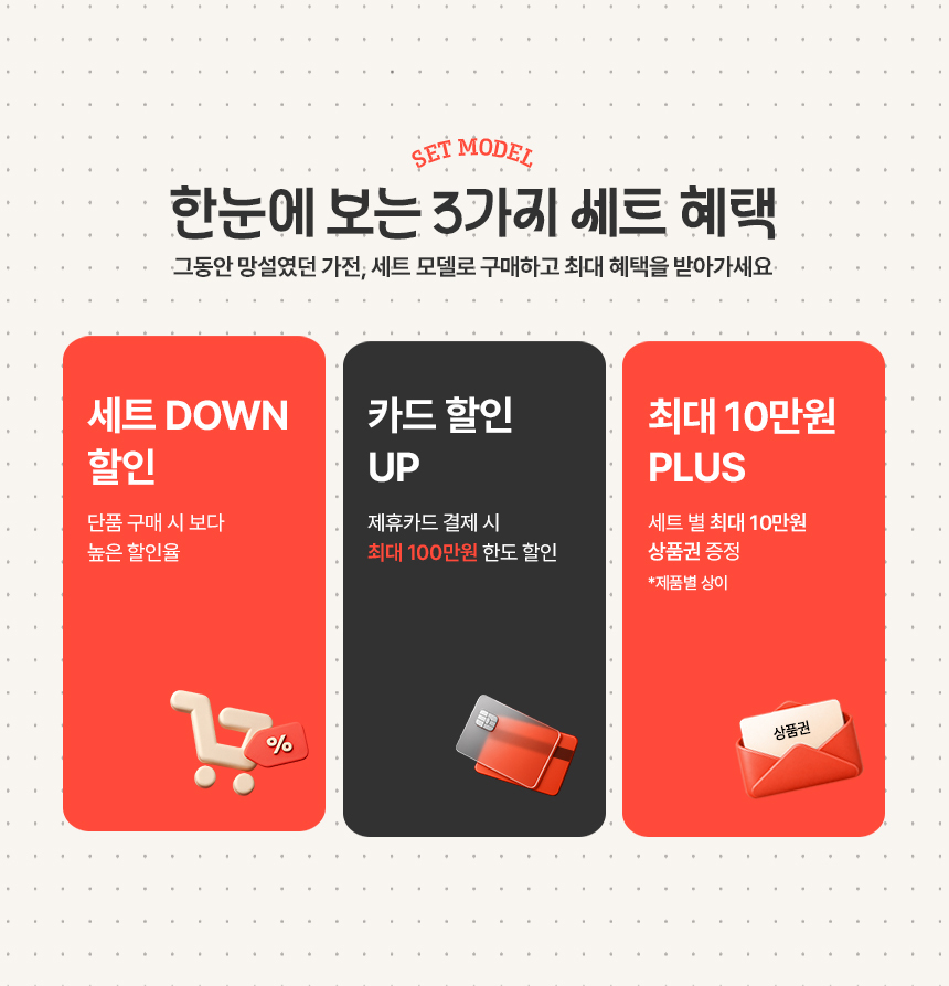 다품목 모델 구매시 최대 10만원 상당의 상품권 증정